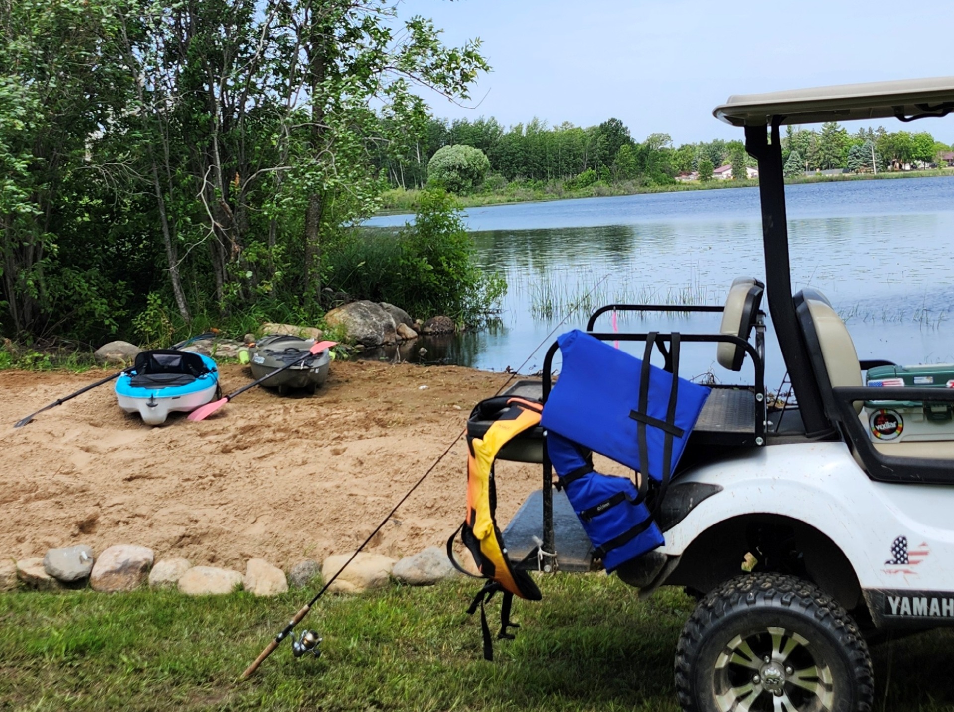 Kayaks, fishing, and lazy afternoons at the lake.