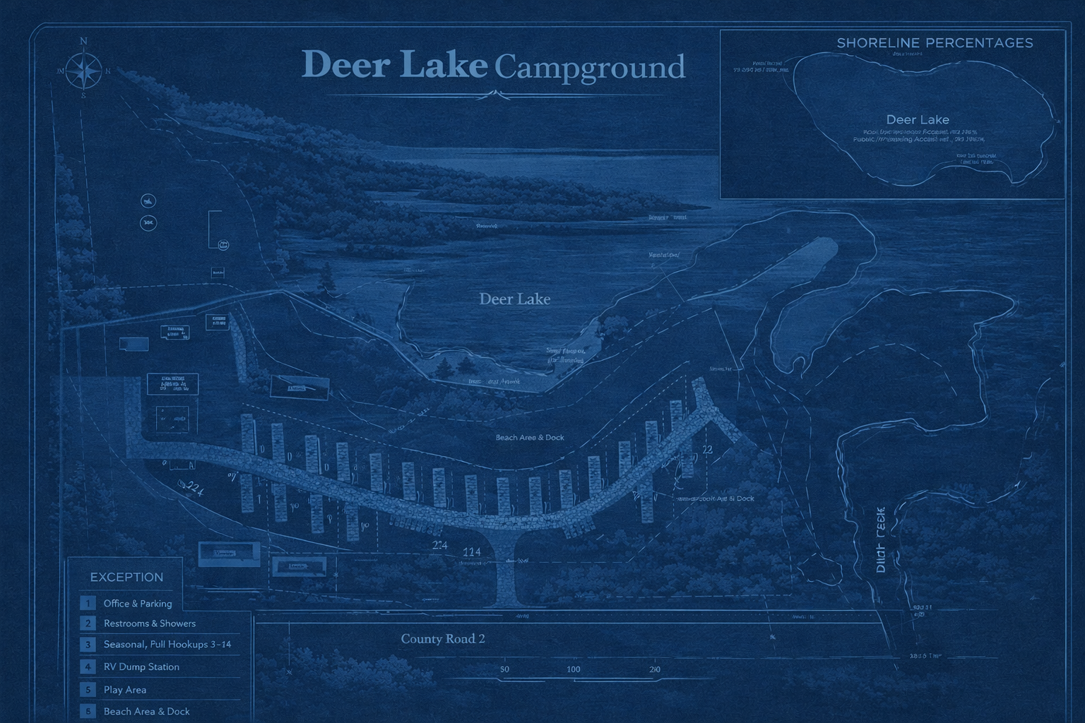 Whether you’re eyeing a quiet site near the fields, something closer to the clubhouse, or an easy walk to the dock, our park map makes it simple to picture life at Deer Lake Farmstead. See how the extra-large seasonal RV and park-model sites are laid out along the south shore of non-motorized Deer Lake, where the clubhouse, bathhouse, laundry, and fitness nook sit, and how the roads weave through open green space and farm country. You’ll also get a feel for just how close we are to Mille Lacs—within walking distance or a short golf cart ride to Malmo Bay.
